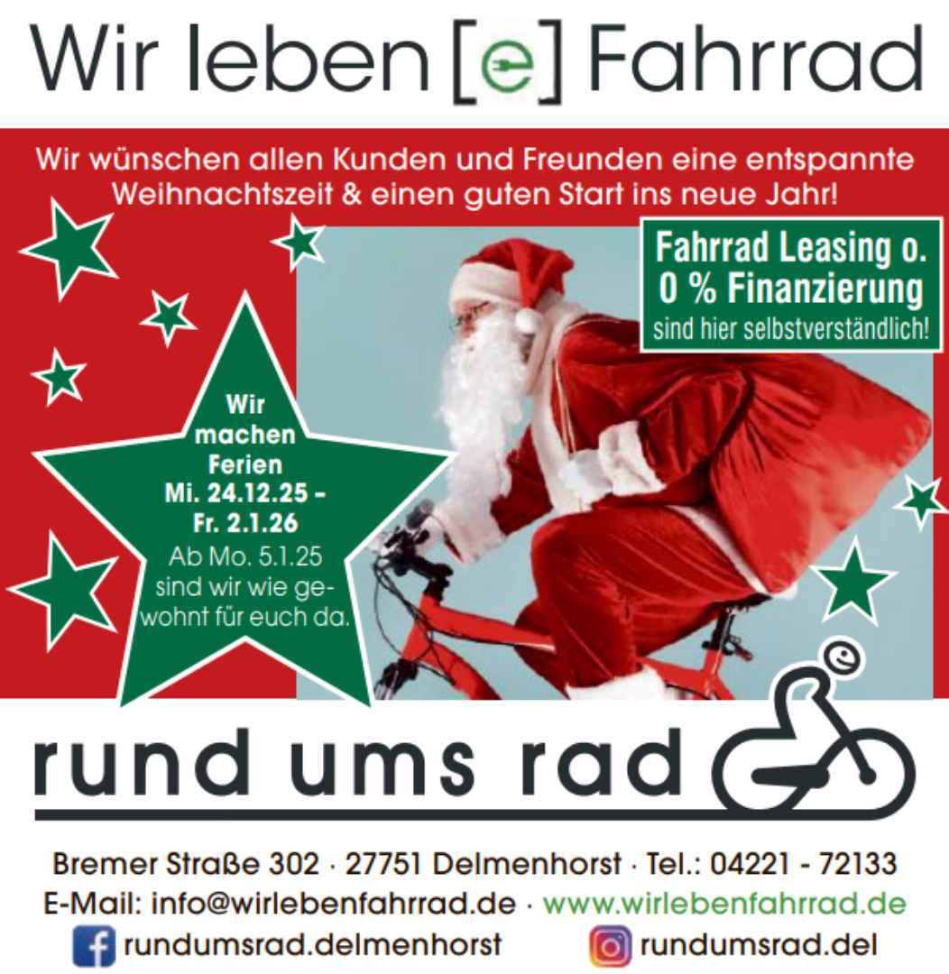 Wir freuen uns Euch bei rund ums rad in Delmenhorst begrüßen zu dürfen. Seit dem 01.08.1996 befindet sich unser inhabergeführtes Fahrradfachgeschäft bereits in Delmenhorst. Im Großraum Bremen und Oldenburg konnten wir uns mit unserem kompetenten Team und der vielfältigen Auswahl, als feste Anlaufstelle etablieren. In unserer Ausstellung wartet eine große Brandweite an Pedelecs, Fahrrädern und Zubehör von namenhaften Herstellern auf Euch.